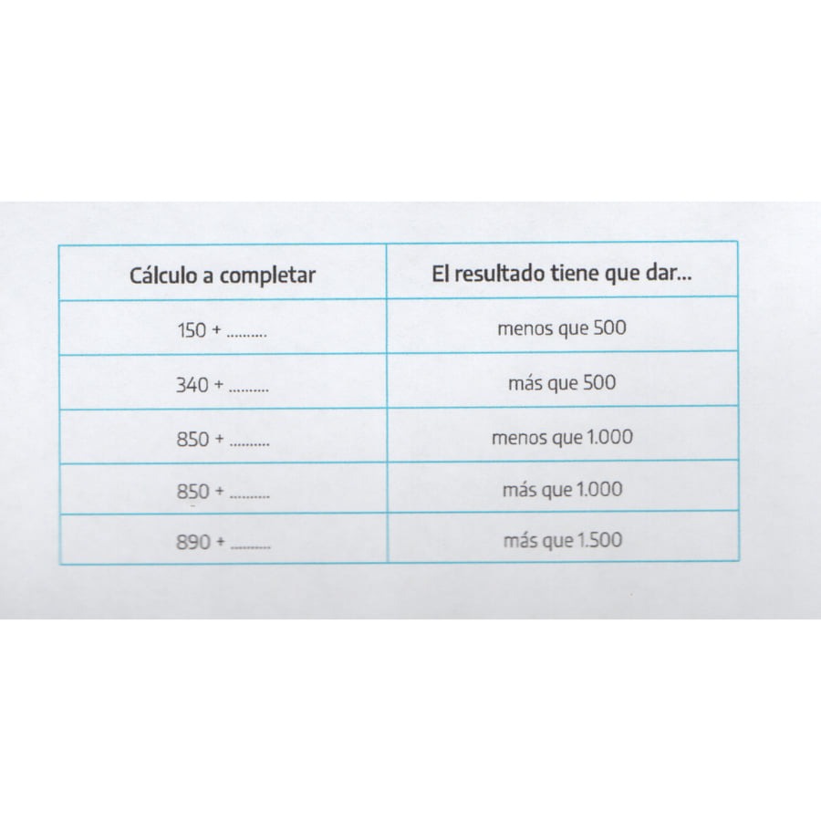 3) Escribí un número de tres cifras para completar cada una de las sumas atendiendo a lo que tiene que dar el resultado. Después comprobá con la calculadora.